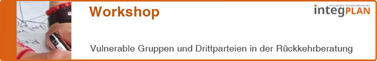 Die TeilnehmerInnen beschäftigen sich in dem Workshop mit den beiden komlexen Themen: Schutzbedürftige Personen und Drittparteien in der Rückkehrberatung. Es werden die besonderen Bedürfnisse vulnerabler Personen und die Herausforderungen für BeraterInnen besprochen und diskutiert. Die Bedeutung von „Drittparteien“ (u.a. Ehrenamtliche, DolmetscherInnen, SozialberaterInnen, gesetzliche BetreuerInnen) und die Auswirkungen auf den Beratungsprozess bilden den zweiten Schwerpunkt dieses Workshops. Erfahrung in der Rückkehrberatung und die Bereitschaft, eigene Fallbeispiele vorzustellen, werden gewünscht/vorausgesetzt.